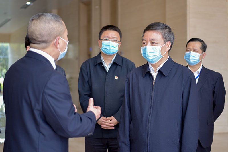3月24日上午,湖北省副省長楊云彥等領導,在黃石市委書記董衛民等領導的陪同下,蒞臨勁牌持正堂藥業,調研指導抗疫中藥制劑生產工作,勁牌公司董事長、總裁吳少勛,副總裁李清安予以熱情接待。