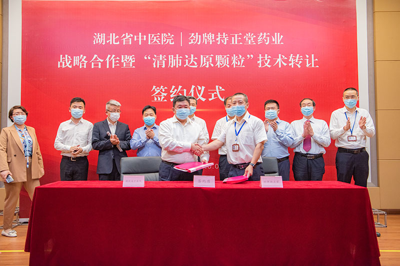 5月11日,湖北省中醫(yī)院與勁牌持正堂藥業(yè)戰(zhàn)略合作暨“清肺達原顆粒”技術轉讓簽約儀式,在勁牌持正堂藥業(yè)隆重舉行。湖北省中醫(yī)院黨委書記巴元明、院長何紹斌,黃石市衛(wèi)健委主任劉安定,勁牌公司董事長、總裁吳少勛,勁牌持正堂藥業(yè)總經理李清安出席儀式。 來訪領導先后參觀了勁牌研究院、中藥提取車間,了解了公司數(shù)字提取工藝,和疫情期間中藥產品的生產捐贈情況。隨后在持正堂藥業(yè)展開座談會議。 會上,雙方對各自發(fā)展歷程、運營狀況、技術強項及面臨困難進行了深入溝通。 巴元明書記以“重大疫情”、“重大擔當”、“重大機遇”、“重大合作”四個重大高度概括此次合作及其背景。他表示,在這次傳播速度最快、感染率最廣、防控難度最大的歷史性疫情面前,雙方都展現(xiàn)出了高度的責任與擔當;同時,中醫(yī)藥在本次疫情防控中彰顯的突出效果為中醫(yī)藥產業(yè)的發(fā)展創(chuàng)造了天時、地利、人和的重要機遇,期望以此次“清肺達原顆粒”臨床批件申報為起點,與勁牌一起傳承精華,守正創(chuàng)新,攜手打造湖北中醫(yī)藥強省。 何紹斌院長表示,此次與勁牌的戰(zhàn)略合作,雙方目標一致,互補性強,可充分發(fā)揮湖北省中醫(yī)院的科研及臨床優(yōu)勢和勁牌的市場優(yōu)勢。此次合作基礎良好,前景光明。期望雙方加強溝通和交流,共同推進戰(zhàn)略合作的深入開展。 會上,湖北省中醫(yī)院院長何紹斌與勁牌有限公司董事長吳少勛,及勁牌持正堂藥業(yè)總經理李清安,分別簽訂了“湖北省中醫(yī)院與勁牌持正堂藥業(yè)有限公司共同振興發(fā)展湖北省中醫(yī)藥事業(yè)的戰(zhàn)略合作協(xié)議”和“‘清肺達原顆粒’技術轉讓與新藥臨床前研究合作協(xié)議”。 據(jù)了解,湖北省中藥資源豐富,中藥工業(yè)存在較大提升空間,湖北省中醫(yī)院作為省內龍頭中醫(yī)院,與勁牌達成戰(zhàn)略合作,包括“積極合作開展茯苓等湖北省優(yōu)勢中藥材的種植、基礎研究及產業(yè)化推廣應用”以及“共同推進中藥配方顆粒與傳統(tǒng)飲片臨床等效性評價等工作的開展”,以推動湖北省中醫(yī)藥從種植、工業(yè)生產到臨床使用全產業(yè)鏈的發(fā)展,為將湖北打造為中醫(yī)藥強省助力。 清肺達原顆粒簡介:該方是在國醫(yī)大師梅國強教授的指導下,由巴元明等專家研制的組方(即湖北省中醫(yī)院“肺炎1號”),是唯一一個用于治療新型冠狀病毒肺炎的湖北省地方組方。已全面應用于全省新型冠狀病毒感染肺炎疑似、臨床診斷病例及確診病例治療中。從當前的臨床統(tǒng)計結果來看,“清肺達原顆粒”臨床治愈率達到了95.34%,療效顯著。除治療新型冠狀病毒肺炎之外,該方還可適于由病毒引起的甲流、乙流、禽流感等流行性感冒,具有較大的潛在開發(fā)價值。