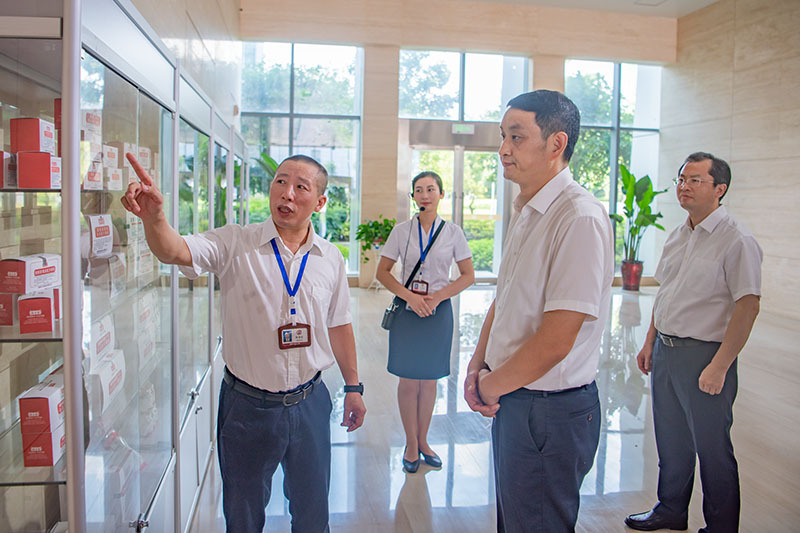 劉海軍書記先后參觀了勁牌持正堂藥業展廳、勁牌智慧藥房、中藥提取中心。就勁牌中藥材選育、數字化炮制流程的運用、中藥數字化提取及中藥顆粒制劑等相關內容進行深入了解,并現場體驗了智慧藥房的數字化診療。 劉海軍書記對勁牌在中醫藥領域的技術創新與數字信息化改革給予了高度評價,并對勁牌積極抗疫,努力弘揚中醫藥文化,心系國民健康的責任意識表達了贊賞。 劉海軍書記指出,勁牌持正堂通過建立數字化制劑工藝與流程,有效改善了中藥抓藥、服藥的不便,對中醫藥產業的發展起到了推動作用。希望勁牌繼續發揚創新精神,傳承責任意識,為湖北省中醫藥產業發展貢獻力量。